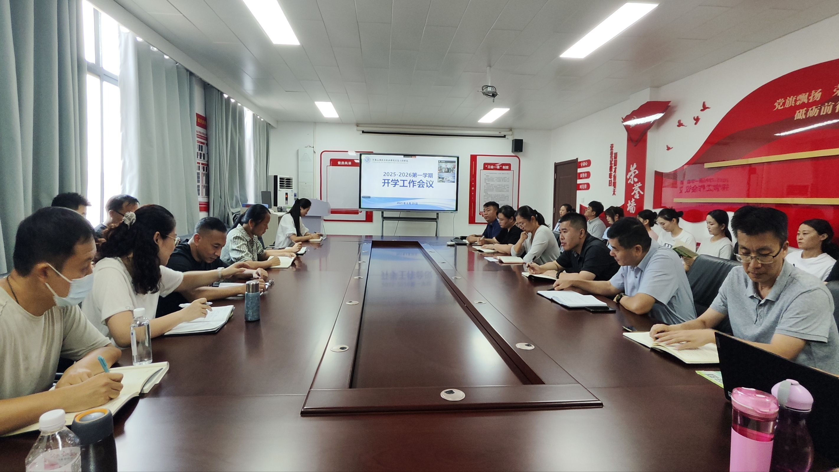 2025年8月29日,公司召开新学期开学工作会议,全面总结回顾上学期工作成效,分析研判当前高等教育发展新形势与新挑战,并就新学期的重点任务与长远发展规划进行深入部署。会议由经理王雷主持,公司党政领导班子成员及全体专兼职教师与会。