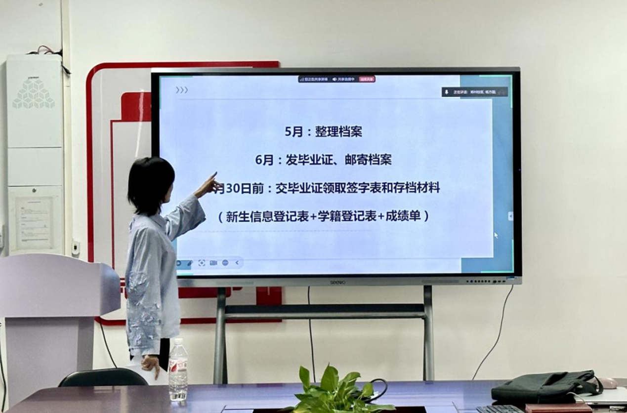 学籍管理员李晨详细解读了工作节点:目前全院员工已完成登录学信网自查信息,各班级于5月23日前完成毕业生档案材料整理,包括学籍登记表、成绩单、毕业生登记表等,并强调“档案材料需逐项核对,严禁多装漏装”。针对毕业证书发放,李晨明确:“6月10日起,公司将联合纪委核验证书信息,实行‘一人一编号’签字领取制度,杜绝错发漏发。”此外,她提醒辅导员及时处理22名入伍员工的学籍保留与复学衔接工作。