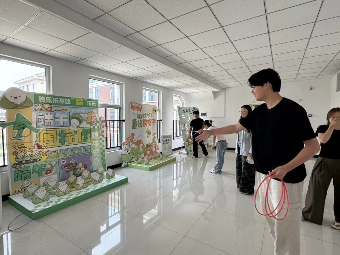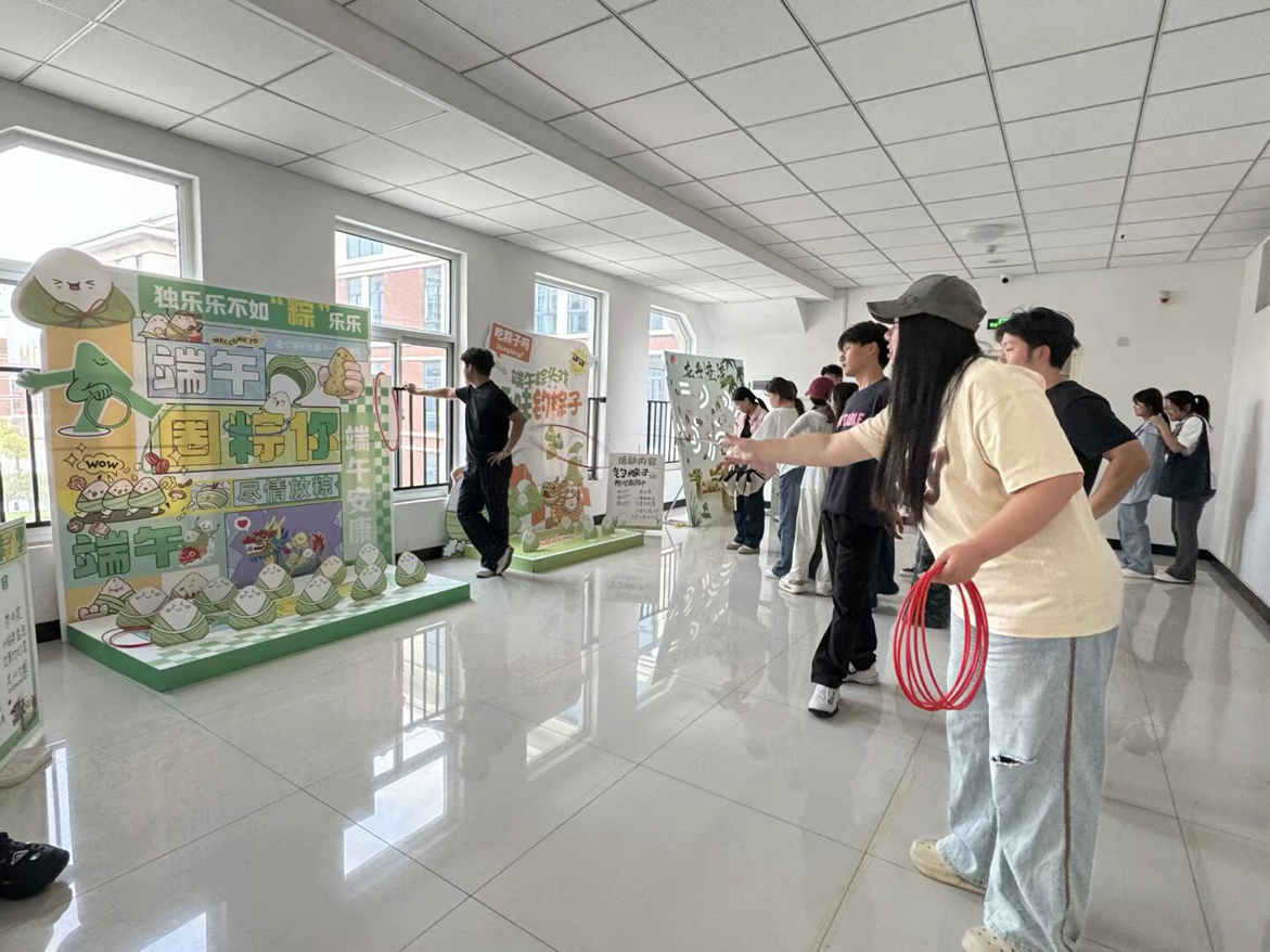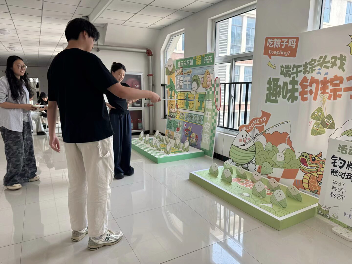 活动搭建了钓粽大作战、套粽子、龙舟竞渡趣味小游戏,邀请路过的师生前来体验。参与活动时,师生们你追我赶、奋勇争先,大家凭借出色的手眼协调力,赢得现场阵阵欢呼和呐喊声,现场氛围热烈活跃。