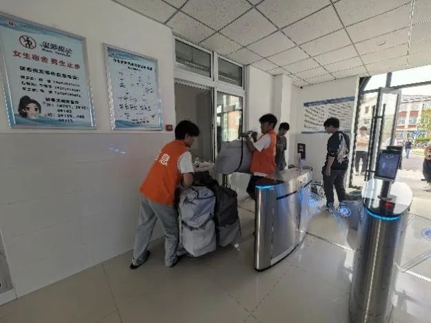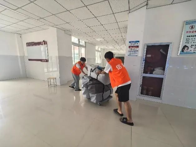 志愿者们积极投身搬迁工作,搬运行李时细致谨慎,以高度负责的态度,保障物品有序转运,尽显担当。