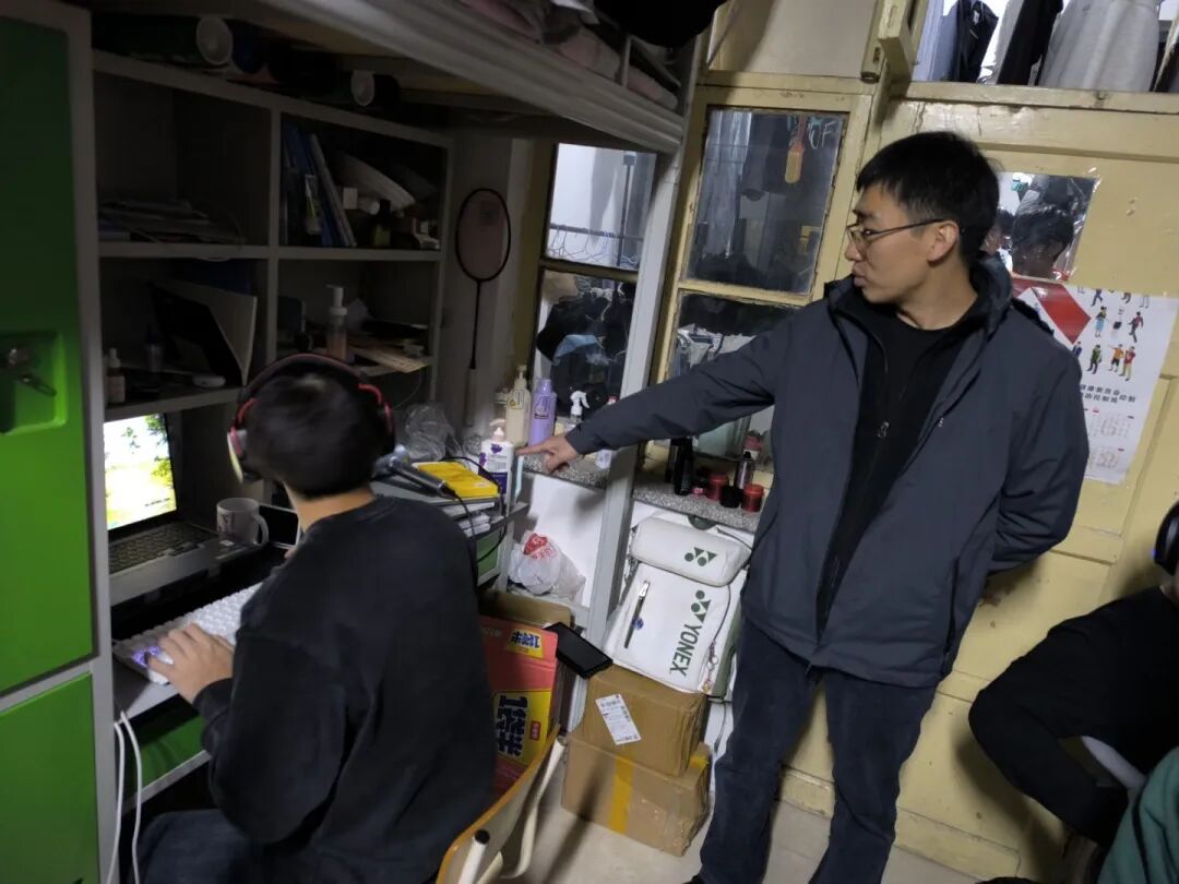 党总支副书记杨帆重点走访了男生宿舍,对用电安全、消防设施等关键环节进行了全面检查。在检查过程中,杨帆副书记与同学们进行了深入交流,详细了解大家的日常生活状况,并严肃强调了遵守宿舍管理规定的必要性。他明确指出,要坚决杜绝使用违规电器,确保用电安全,要求同学们牢固树立安全意识,共同维护宿舍安全环境。