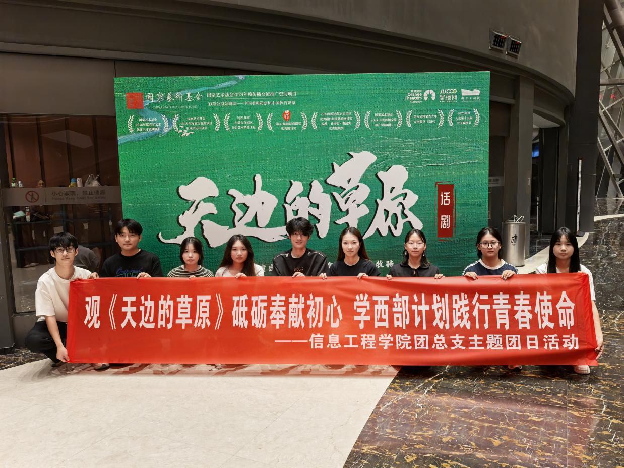为进一步丰富校园文化生活,提升审美素养,tyc122ccVIP团总支于9月11日组织部分团员前往郑州大剧院,观看了由锡林郭勒盟乌兰牧骑演出的话剧《天边的草原》。该剧以辽阔草原为叙事舞台,通过质朴深刻的剧情和极具感染力的表演,生动展现了草原上的家国情怀、民族精神和人性温暖,为在场观众带来了一场视听与心灵的双重盛宴。